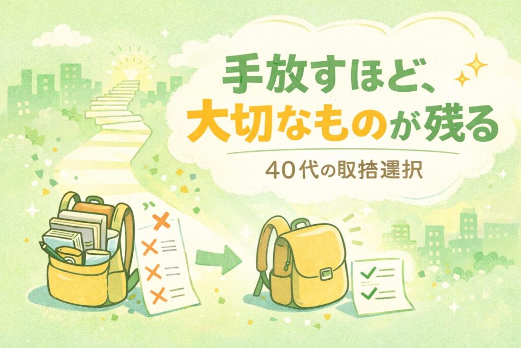 40代になると、「もっと頑張らなきゃ」「まだ足りないかも」と思いながらも、どこかで限界も感じ始めます。そこで大事になるのが取捨選択です。手放すというと、逃げや諦めのように聞こえるかもしれません。でも実際は、続けてきたからこそ「これは今の自分には重い」「これはもう役目を終えた」と判断できるようになります。若い頃は、選択肢を増やすことが成長だと感じやすい。経験も人間関係も、できることも、とにかく足していく。でも40代は、足したものが増えた分だけ、守るものも増えて疲れやすくなります。だからこそ、全部を持ち続けるのではなく、大切なものを残すために、いくつかを置いていく。これが前向きな手放しです。たとえば、結果が出ないやり方を変える、義務感だけの付き合いを減らす、完璧主義を緩める。そうすると心に余白ができ、継続したいものに力が戻ってきます。手放しは終わりではなく、次の継続を守る選択です。続けてきた自分を信じられたとき、手放すことは怖さではなく、軽さに変わっていきます。