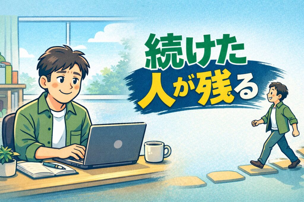 40代だからこそ、自分の生活や性格を理解し、現実的な続け方を選べる強みがあります。派手な成果がなくても、続けた先で残るのは「自分は積み上げられる」という確かな感覚です。才能がないから続かないのではありません。続けるための考え方を知っているかどうか、それだけの違いです。