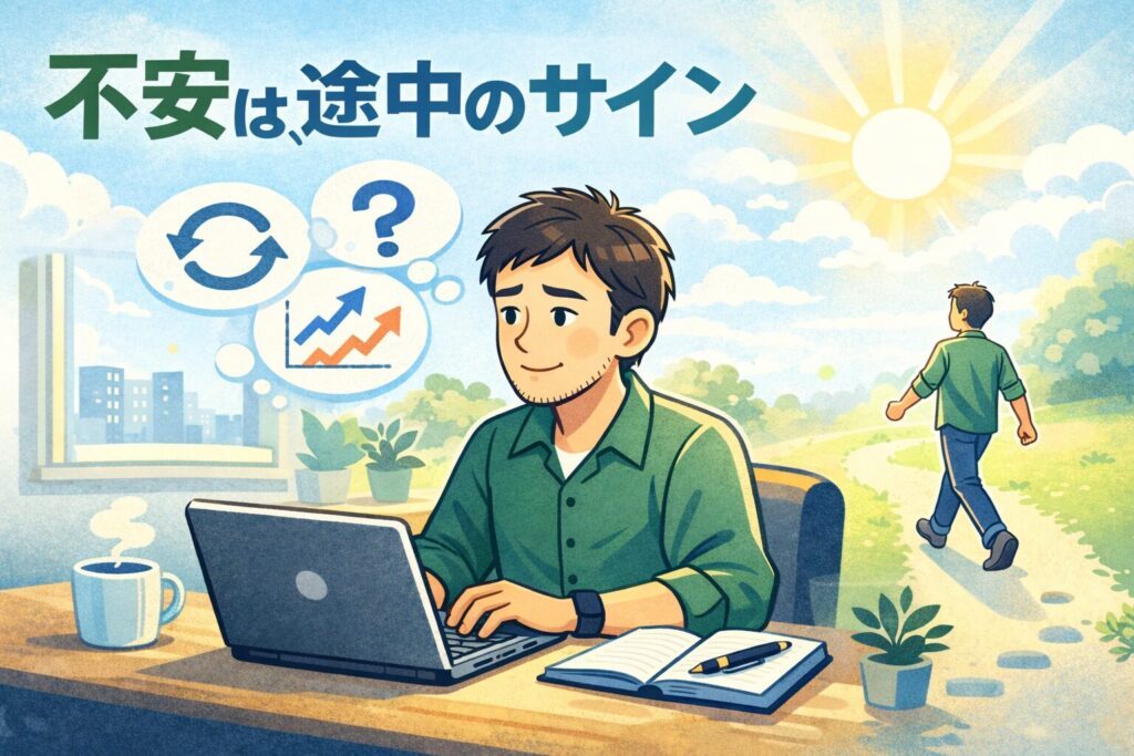 不安がある状態でも記事を書き、考え、試行錯誤を重ねる。その積み重ねが、文章の質や視点の深さを静かに育てていきます。安心できない時間は、成長が止まっているサインではなく、成長が進行中であることを示す感覚とも言えます。何も感じなくなったときよりも、迷いながら続けているときのほうが、後から大きな変化につながりやすいのです。